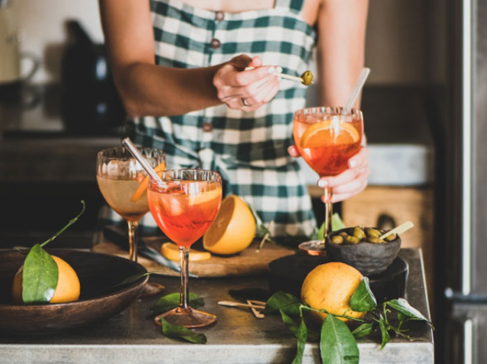 Why not swap the expensive cocktail bars, surrounded by lots of people for a homemade cocktail evening (you could even wear pyjamas)! We like the idea of turning it into a friendly competition – judge each others drinks on design, taste and creativity. A little competition is healthy right?