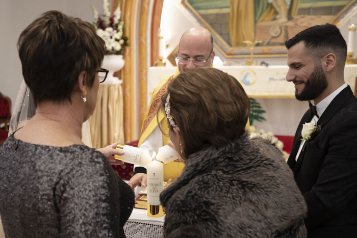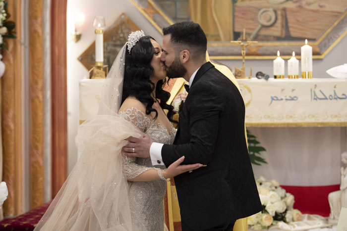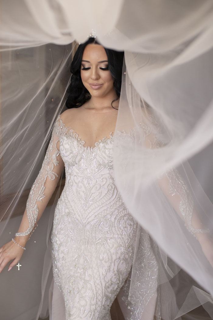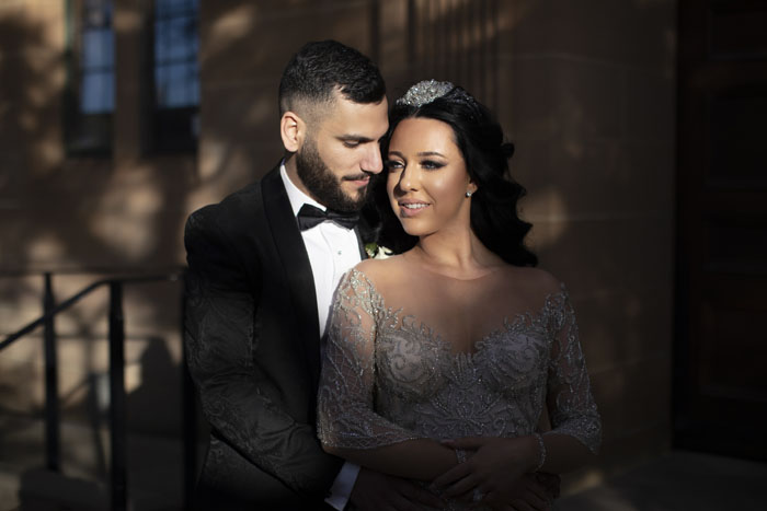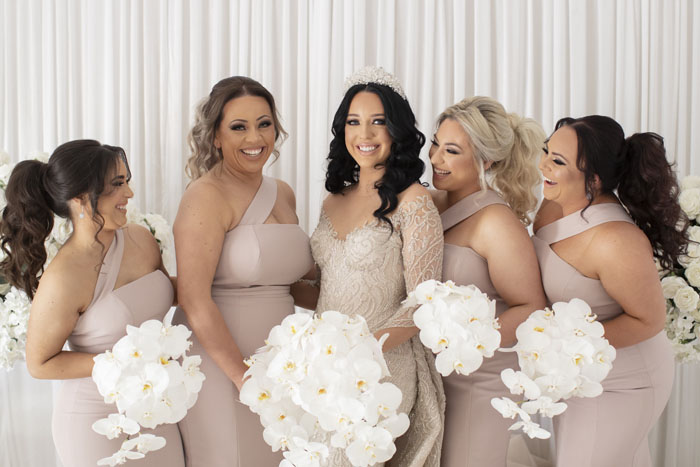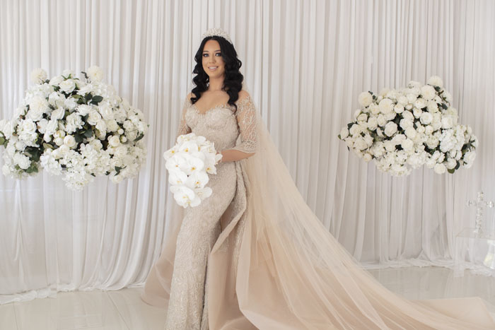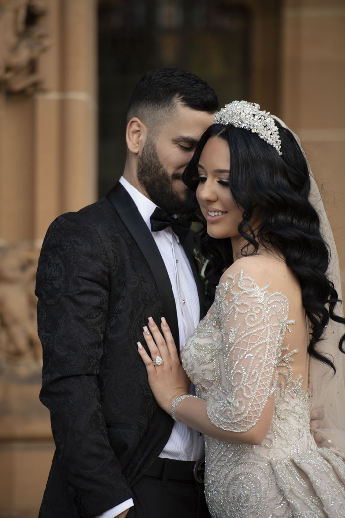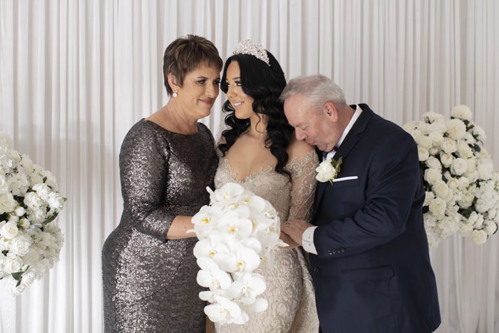 The original plan for their wedding was to celebrate with 300 guests of friends and family. With Dom being Lebanese and Olivia being Macedonian, a larger wedding was one of the traditions they were greatly looking forward to. Unfortunately, due to the pandemic and restrictions, the number of guests had to be reduced. They were still able to officially say ‘I do’ with a ceremony at St Joseph’s Maronite Catholic Church surrounded by 100 of their loved ones. The church was decorated with large bouquets of white roses to match the wedding decor and luxurious theme.