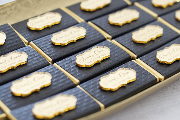 The couple knew that they wanted their big day to have a classic and romantic look, filled with layers of luxury. Olivia’s inspiration for the theme of the wedding was based on her luxurious and modern dress. Their custom wedding invitations, bonbonniere, and unity candle set were styled white with a magical gold foil finish to complement their wedding design. Each guest received a gorgeous candle as their bonbonniere, designed to be a beautiful reminder of Dom and Olivia’s wedding day and love for each other.