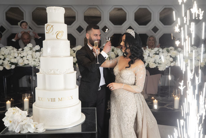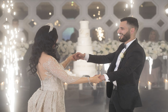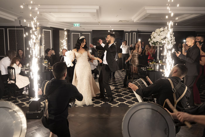 The entertainment can only be described as traditional and extraordinary. The couple enjoyed incredible live drummers at both their homes and at the ceremony, then continuing into the reception. Throughout the evening a mixture of traditional Lebanese musicians and Macedonian bands filled the room with their talent, for all the guests to celebrate and dance to. The reception was hosted by Jacob Hacklany, who also performed R&B and classic hits for guests to let their hair down! Later in the evening, Jacob performed “All of Me” by John Legend for Olivia and Dom’s first dance which was a truly magical affair. The newlyweds floated in the heart of the room infused with cloud-like smoke and dazzled in the light of the sparklers shooting around them.