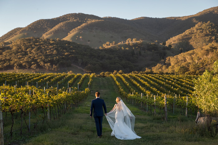 Wedding Gown Designer: Monique Lhuillier / Ceremony Location: Logan Wines / Reception Location: Burnbrae Wines / Florist: Shiralee Archer / Wedding Planner: Darling Days / Groom’s Suit: Canali / Photographer: Society Photography / Catering: Relish Catering / Cake and Dessert Bar: Who Ate the Cake / Bride’s Hair: Emma Rapley / Bride’s Make Up: Beauty Room Mudgee / Signage: Pencil Pop Designs / Band and Videography: The White Trees