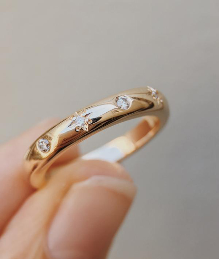 For the bride who loves gazing up at the night sky, this moon and stars ring will elegantly suit your style. The sparkly shapes will be a constant reminder that your significant other’s love is like a star – you can’t always see it but you know that it’s always there.