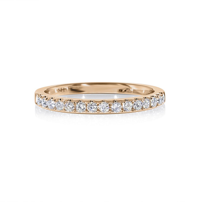 Rose gold meets diamonds in the most elegant way with this gorgeous wedding ring. This band was made to perfectly compliment your engagement ring without stealing all of the glory. We absolutely adore this stunning sparkle!