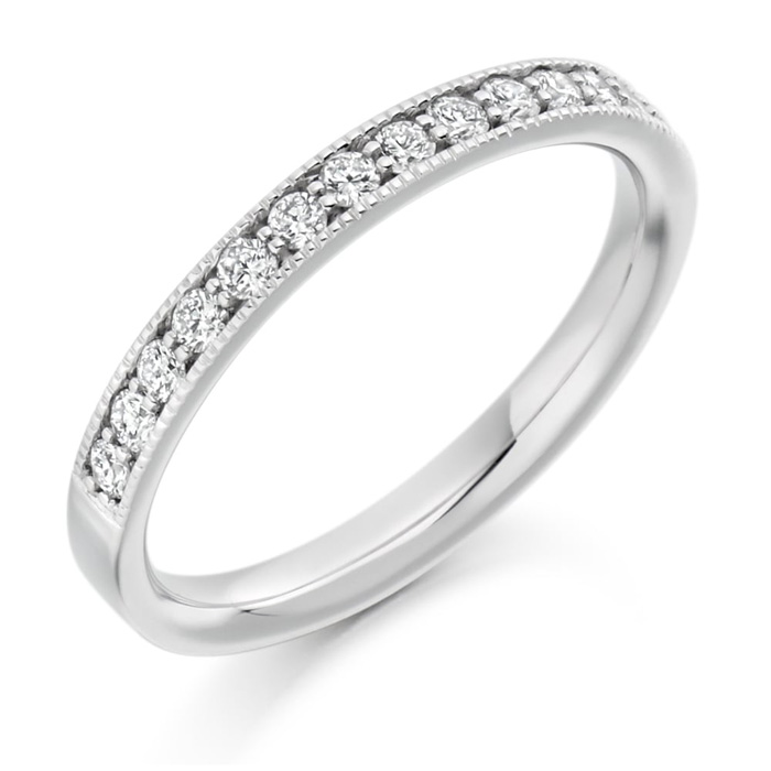 For the bride who wants a wedding band with a simple sparkle, the understated beauty of this ring is perfect. Without being too flashy, this millegrained diamond ring will add a subtle twinkle to your left hand.