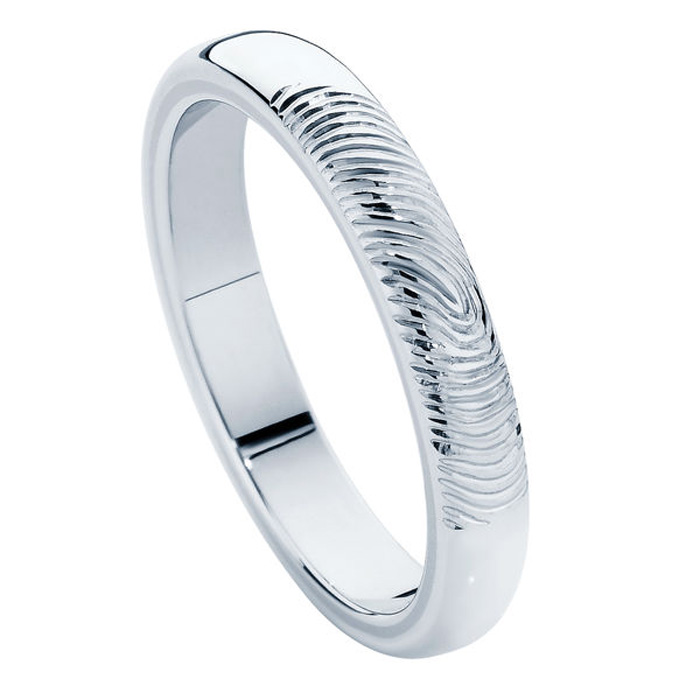To add a sentimental touch to your classic wedding band, get the fingerprint of your beloved engraved onto the outside of your ring. This ring has such a unique and special element incorporated, while still retaining the traditional wedding band look that so many people love.