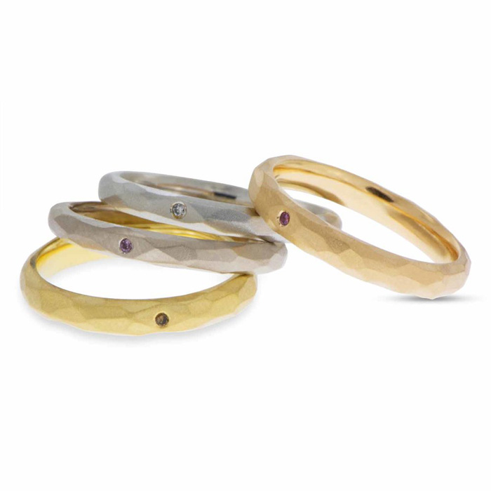 These faceted bands put a unique spin on the classic round wedding ring. Set with Australian diamonds, these rings effortlessly combine the traditional and the quirky for a look that screams refined eccentricity.