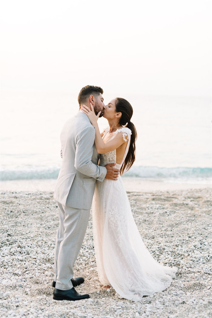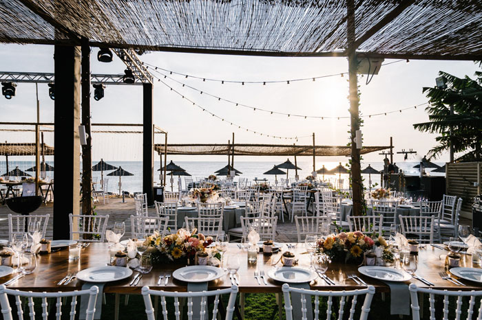 Photography: Nikos Koutoulas / Planning, Design & Styling: Pompon Story Events / Stationery: Manousenia Design / Wedding Dress: Anem Collections Anna Anemomilou / Florist: Elpida Salouka / Venue: Mango Beach Bar / Catering: Mamalis Catering