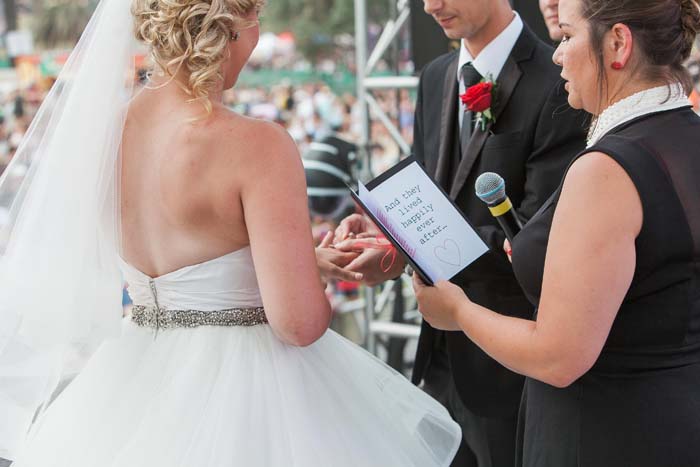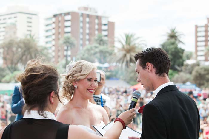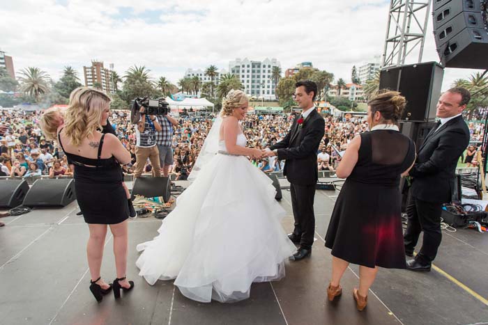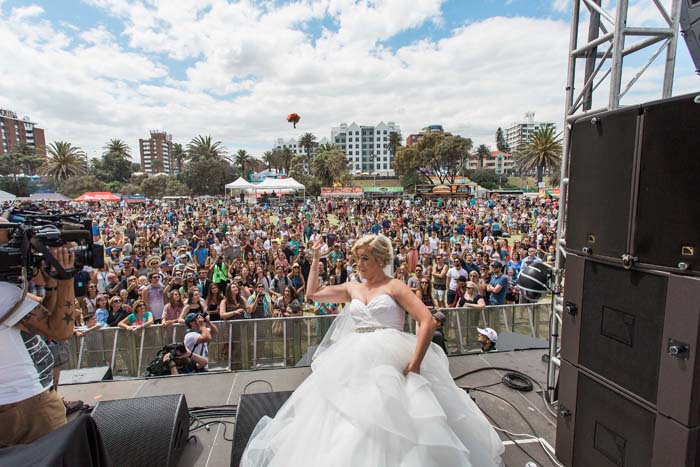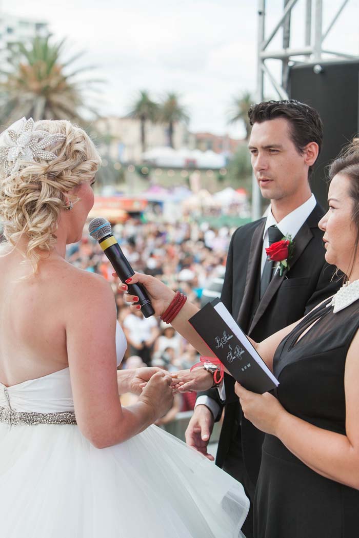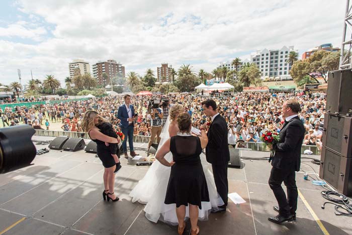Recently, we were on the beach and mum saw an article in the paper, calling out to any couples that would like to get married on the main stage at the St Kilda Festival on Valentine’s Day. Sam and I decided instantly to apply and two days later we got a call from the celebrant, Kelli Rossi, saying we were accepted. Suddenly, I had just 16 days to plan my dream wedding!