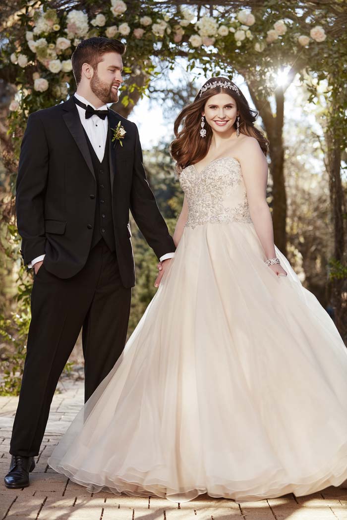Inspired by traditional wedding dresses, these plus size bridal gowns are made with careful attention to detail and construction that make a bride look and feel her absolute best on her wedding day! From designers Stella York and Essense of Australia comes a collection of plus size wedding dresses that are a cut above the rest. From silk chiffons and luxe laces, to intricate detailing and modern silhouettes these plus size wedding dresses never compromise on designer style.