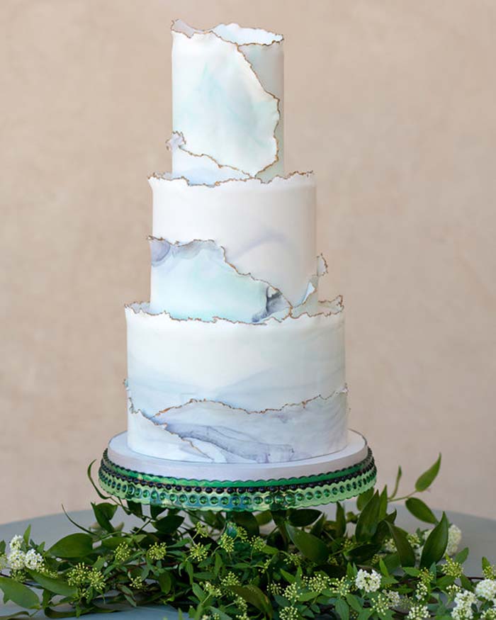 A great way to include a subtle splash of summer colours is to include painted details on your summer wedding cake. A watercolour effect can add soft detail to a classic white cake. For a beach wedding, try some light blue and teal shades for a water inspired finish that looks just like the ocean. Adding some extra texture to the cake as well as this water colour finish can really make your cake stand out.