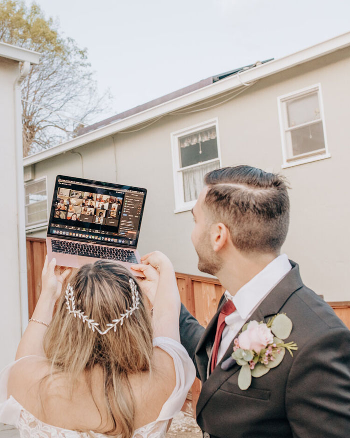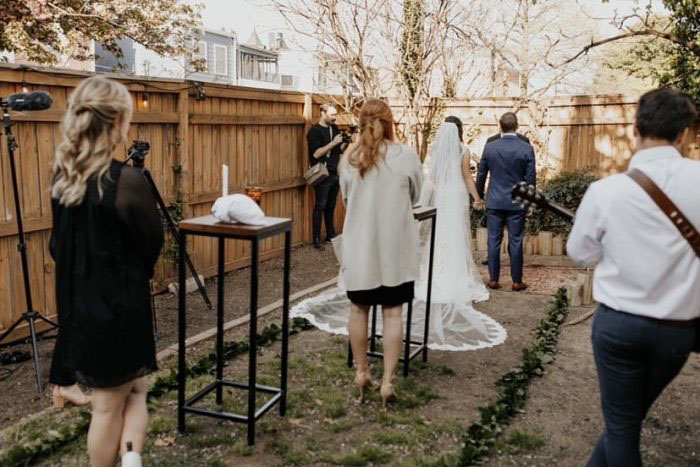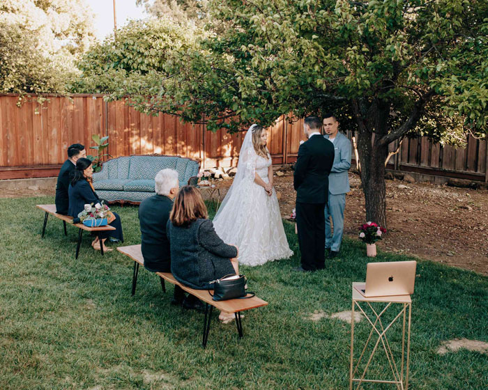 Even though some guests might have to be uninvited from your physical wedding, they can still be a part of your big day! A great option for more intimate weddings is to live stream the ceremony so that you can still share your nuptials with as many loved ones as possible. For the people you’ve had to cut from your guest list, let them know about your virtual ceremony when you share the news that you’ve had to make changes to the invite list and let them know you’d love for them to still be a part of the day. Even for the guests who you would love to physically attend the ceremony, let them know the live stream is happening so that they have the option to join the celebrations virtually if they don’t feel comfortable being at the wedding.