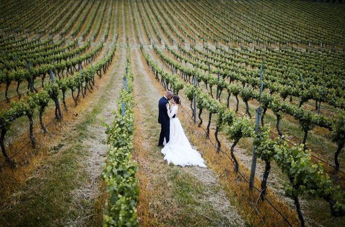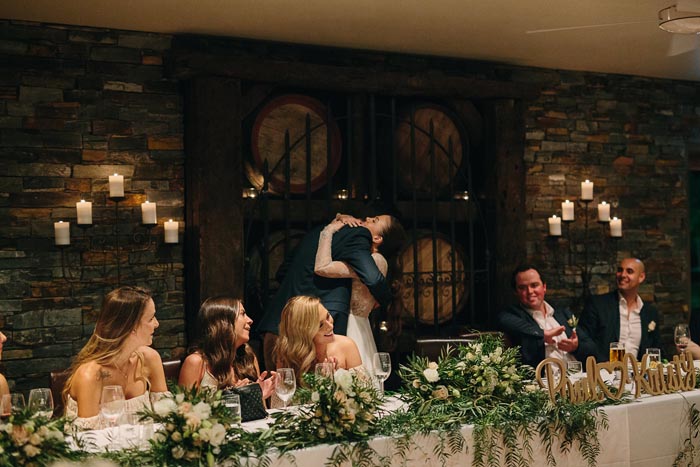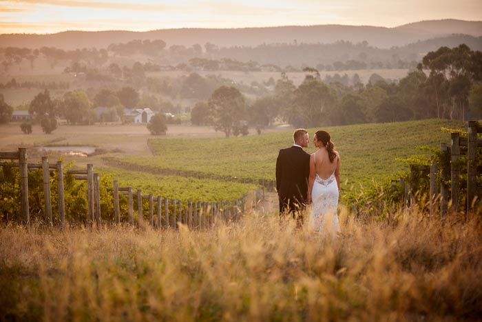 The photos of Stacey and Paul wandering through fields, their barrel room reception and a sweet embrace beneath the vines are all stunning examples of a wedding at Immerse. Captured by Mike Semple Photography.