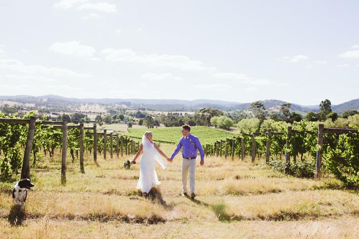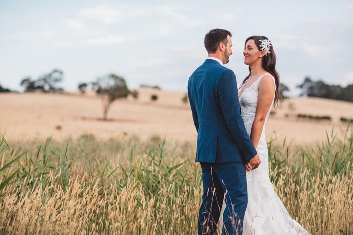 How picturesque is the Yarra Valley? Chantal and Andew’s photos strolling the fields at Immerse are so sweet! We love how the flowers in Ally’s hair match the table flowers perfectly. Captured by Tizia May Photography.