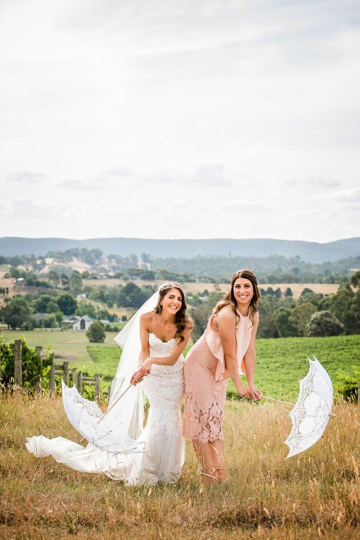 Maria and Nicolas fun-filled Yarra Valley wedding at Immerse had an ‘enchanted garden’ feel. Leafy trees, delicate parasols and cute lawn games created a whimsical atmosphere. Captured by Studio 477.