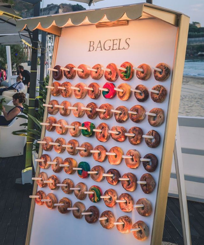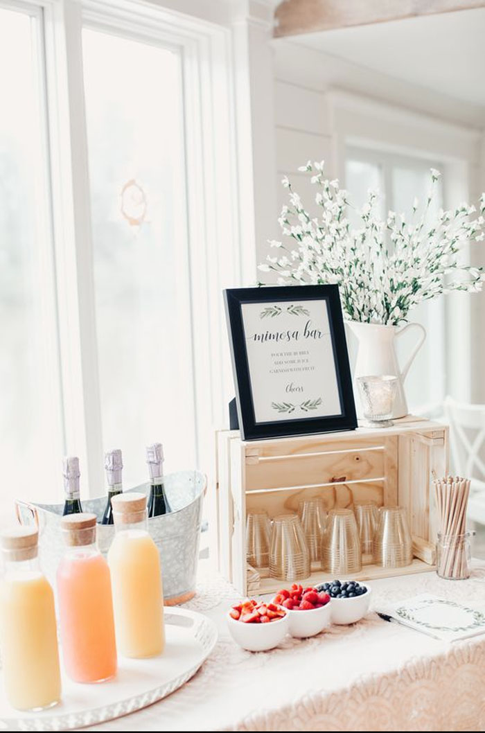 Is brunch really brunch without bottomless drinks? Providing your guests with a “pimp my prosecco” bar with peach and orange juice will certainly have them feeling like kids in a candy shop. It’s a great and inexpensive way to offer multiple drinks to your guests.