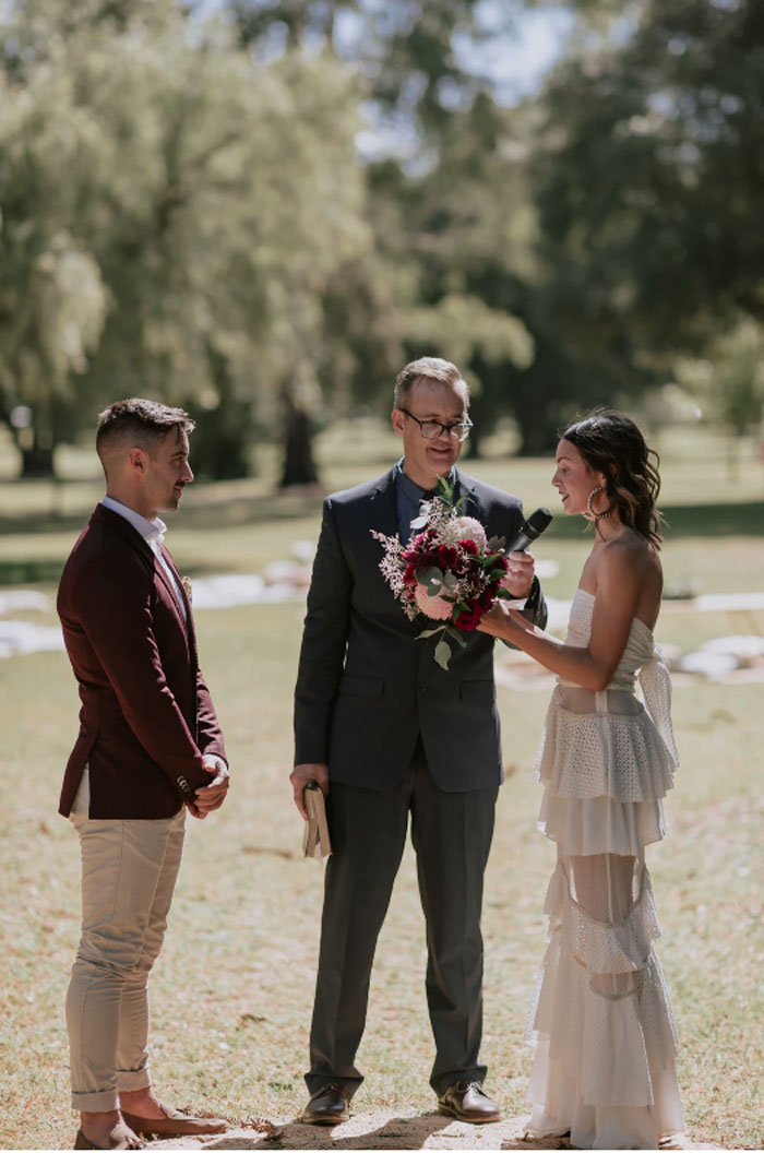 The beauty of throwing a brunch wedding is you can decide how fancy or relaxed you would like your guests to dress, to go alongside your gown, and the styling of the event. It won’t be likely your guest will show up in show-stopping sparkles, but dresses and heels are still appropriate. Ensure you make the dress code clear on the invite to avoid any confusion.