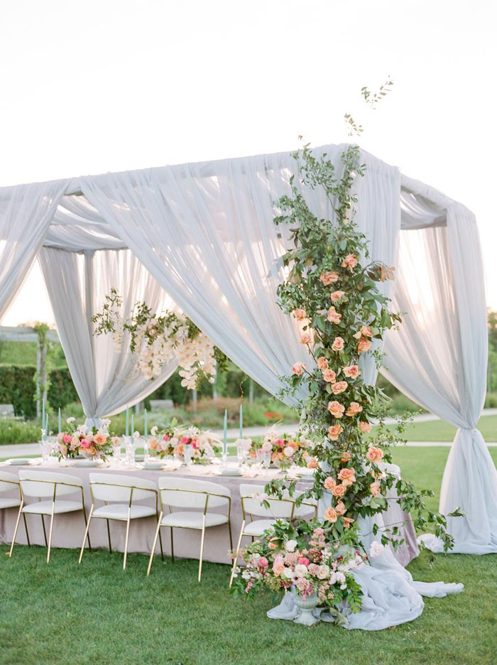 You can be flexible with venues when hosting a brunch wedding, however, an indoor location designed for evening affairs can look out of place. When the weather is right, an outdoor brunch is a glorious setting for a wedding. You can style it to be as eccentric or laid back as you like.