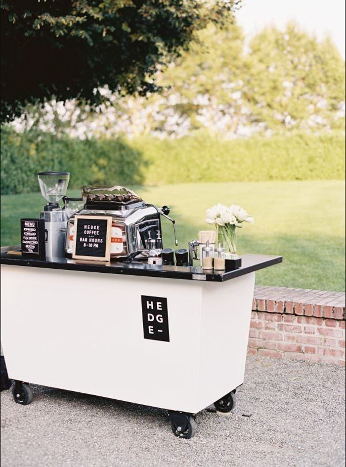 For the adults that need caffeine in the mornings, we love the idea of a coffee cart. You can find some gorgeous ones to tie in with your theme and style. Want to mix things up? Why not have a coffee cart outside the ceremony for everyone to enjoy before the nuptials, that way when it comes to the brunch everyone is awake and ready to party.