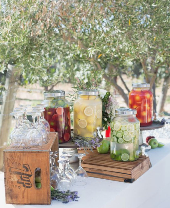 Whether you’re throwing a non-alcoholic wedding or just catering for the non-drinkers, offering an alcoholic-free drinks station is super cute and fun.