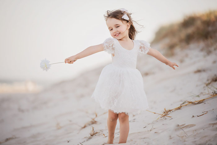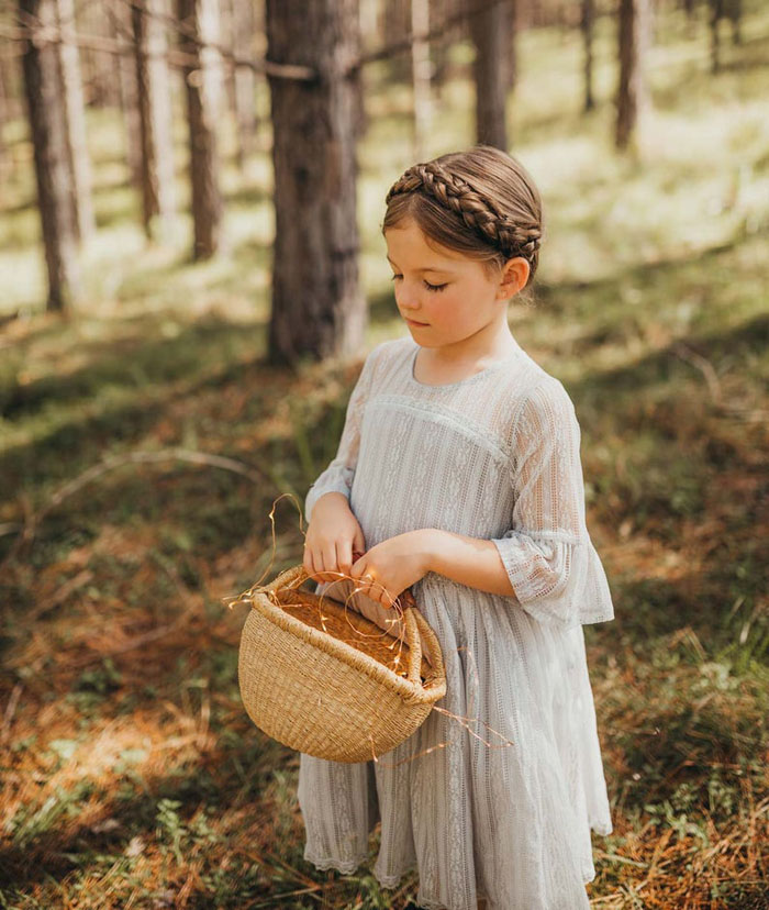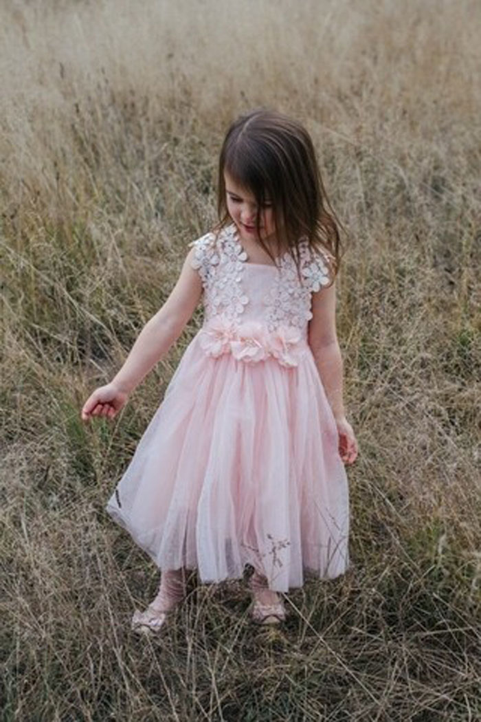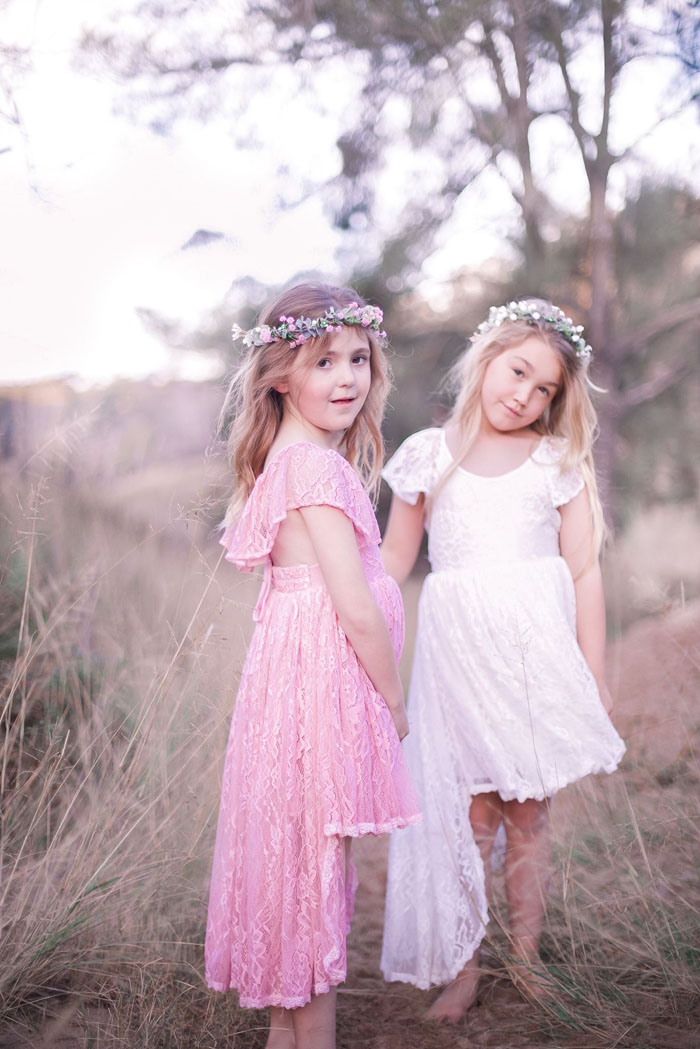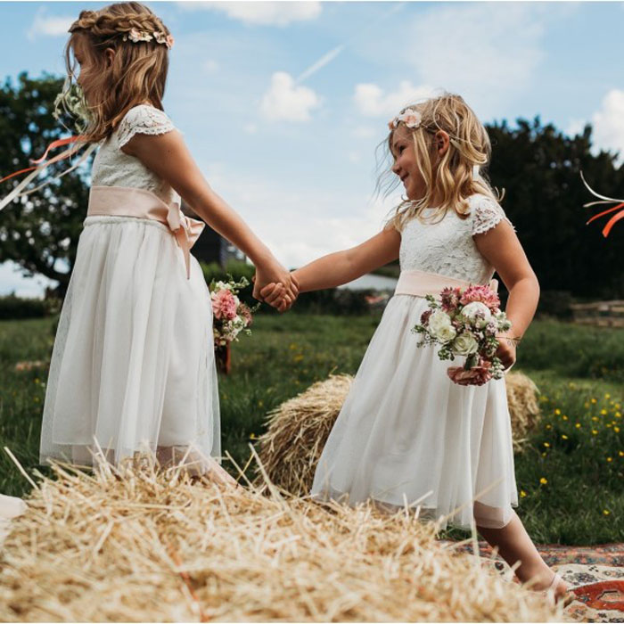 If your wedding is set to be a beautiful bohemian affair, we have found the flower girl dresses for you! This divine silver lace dress is completely unique and is reminiscent of whimsical fairytales with its bell sleeves and lace design. Plus, the soft shimmery tulle underlay gives this dress an extra touch of mystical magic.