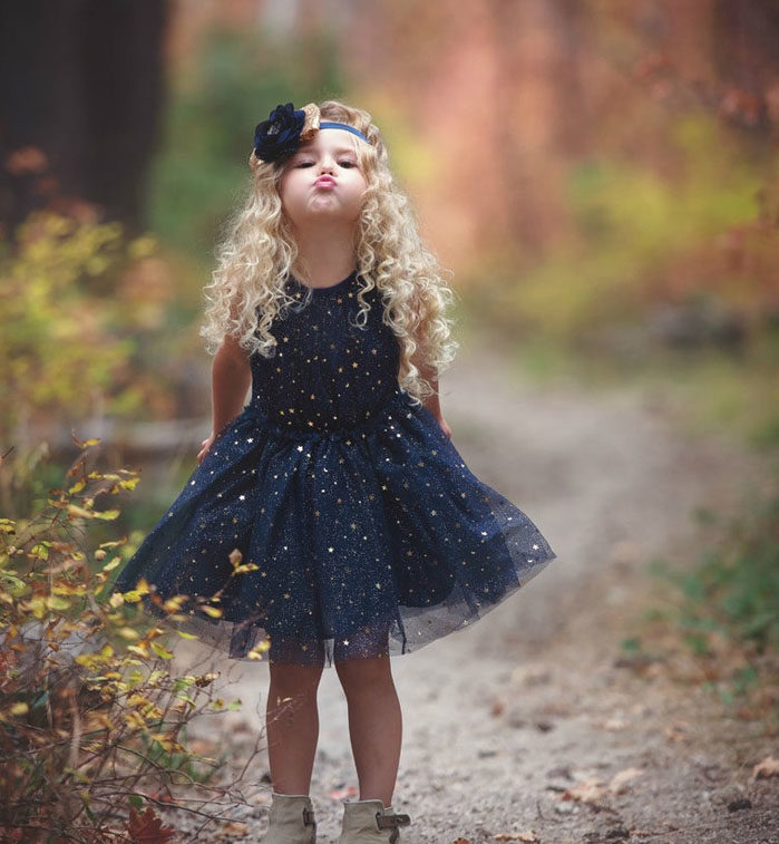 If your flower girl refuses to wear any dress that’s pink and frilly, don’t panic—this gorgeous navy number is the perfect solution to your problems! The gathered elastic waist makes this dress super easy to run around in so that your little lady will be able to play in the garden until her heart’s content. Plus, the sparkly gold stars paired with navy tulle are super cute and elegant without being overly feminine.