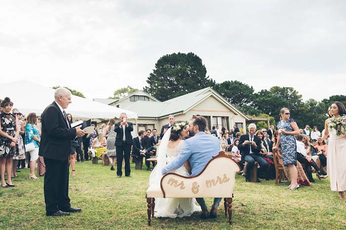 Create #instaworthy styled spots at your wedding to keep snap happy guests entertained. Floral feature walls, floating frames and giant light-up letters are making way for the new selfie hero – the feature seat. We love swings dressed with floral garlands, ‘Mr & Mrs’ chairs and outdoor lounge areas.