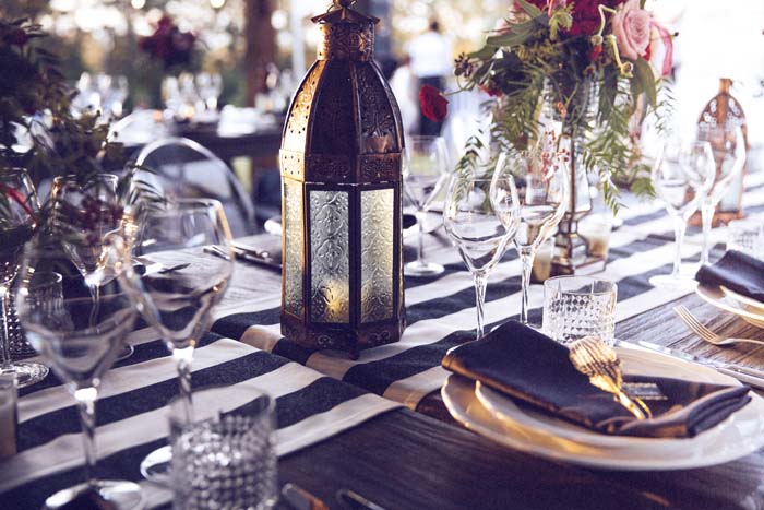 Mix masculinity, sophistication and style into your wedding, with a little bit of black. Steer clear of an overbearing gothic theme and instead go for an unexpected splash here and there. Get the look by layering black napkins amongst your table settings, using simple black chairs or even sleek black signage. Understated hints of noir can tie together busy looks and are always trés chic.