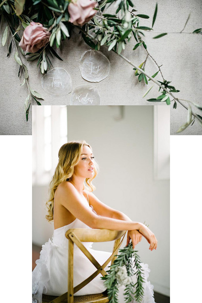 Gowns: Toscano Bridal / Photographer: Two People by Agi Davis / Hair: Reichen Hodson from Hare’s Hair / Makeup: Misha Makeup / Styling: Renee Green Creative / Hire: Avideas / Floral styling: Kate Dawes Flower Design / Venue: Weddings at the Church / Hair Accessories: Molten Store