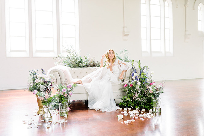 Photographer Two People by Agi Davis has masterfully captured the wedding gowns in a soft, light and airy style. The bridal beauty look by Reichen Hodson from Hare’s Hair and Misha Makeup is equally angelic with a focus on loose curls and dewy skin.