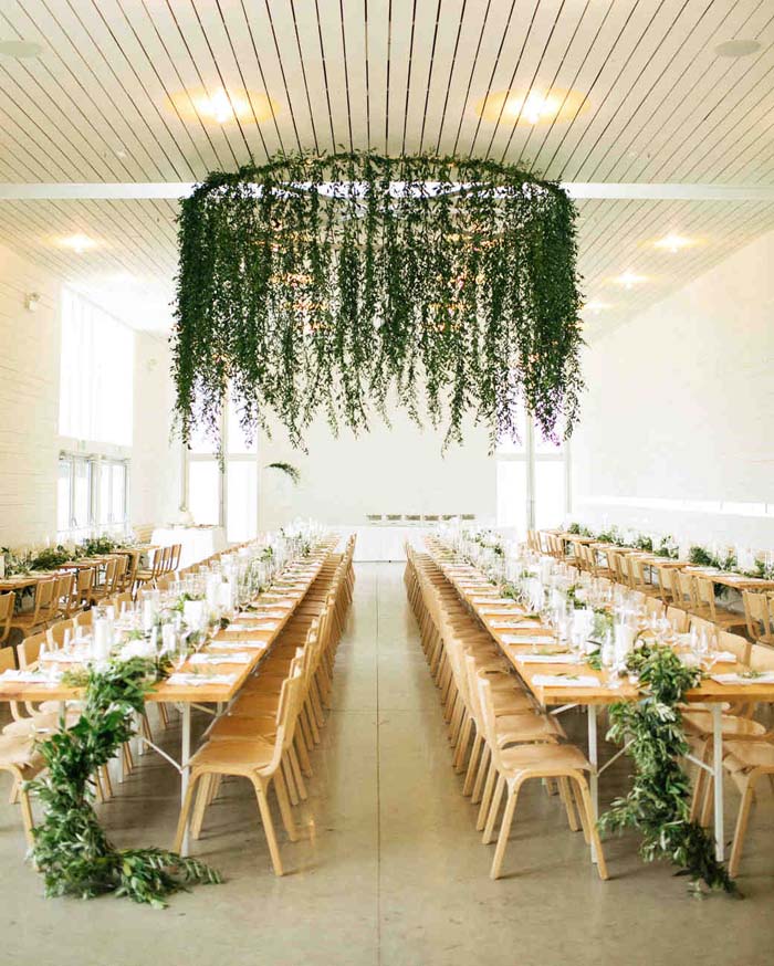 To really give that nod to nature, it’s hard to go past a flower chandelier that has an emphasis on greenery and foliage. Greenery works well with any colour scheme and will be a stand out piece without overshadowing the rest of the decor.