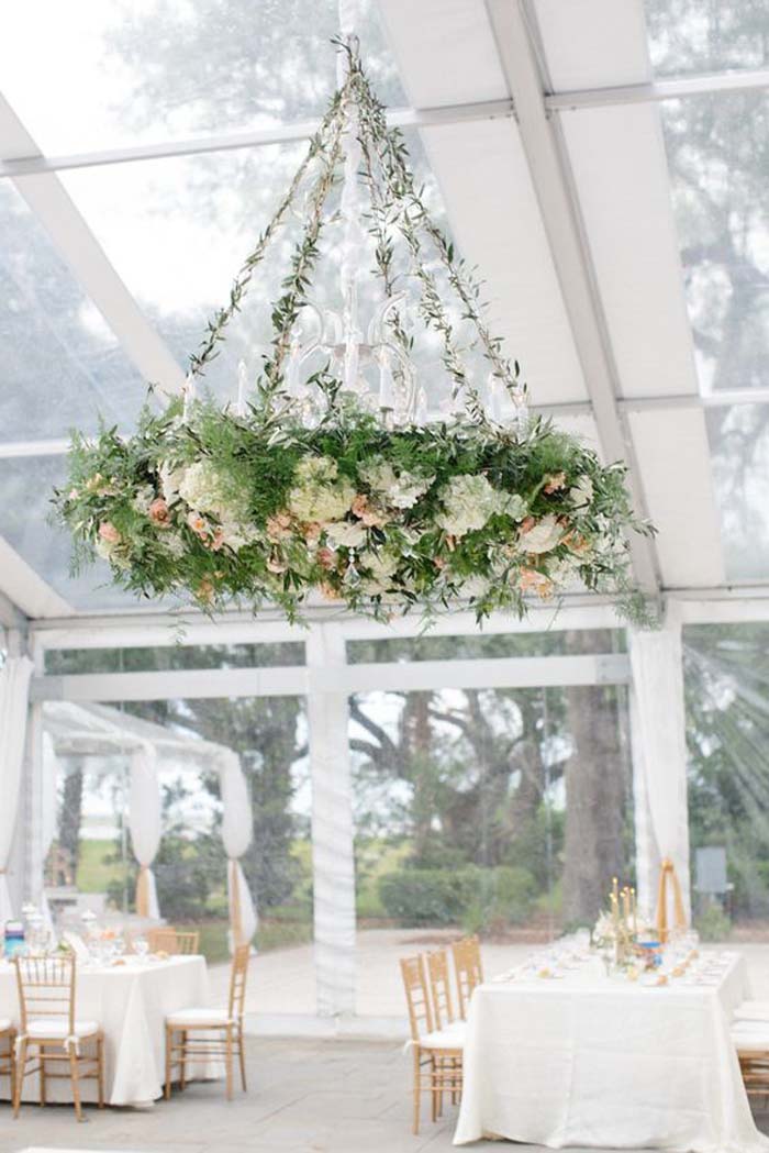 Your reception is the place where a flower chandelier really gets the chance to shine. Typically placed above the tables, these arrangements make sure that the garden wedding theme is present, even if you move to an indoor setting.