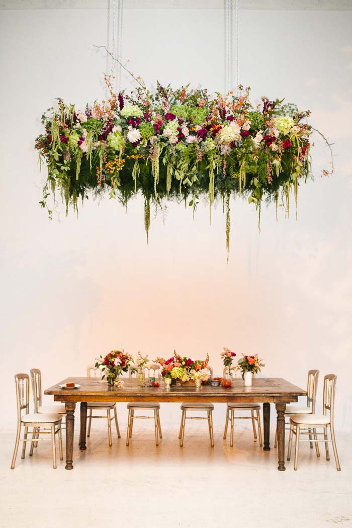 We love a garden wedding here at Modern Wedding. With vibrant florals, stunning greenery and the romance of nature, what’s not to love? Flower chandeliers have been rising in popularity over the last couple of years and we are crushing hard on this garden wedding trend. Here are all the reasons we are loving flower chandeliers.