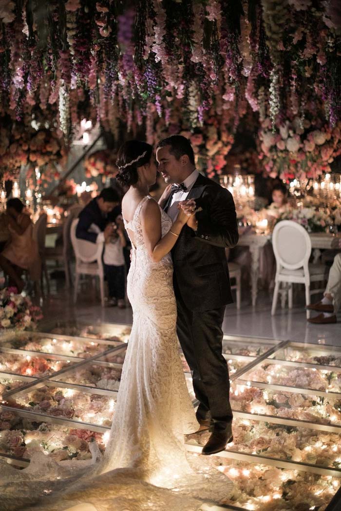 If luscious florals are more your style over greenery and foliage, go all out with blooms. This will make your flower chandelier even more impressive. A bloom focused installation gives off major fairytale vibes and will make any bride feel like she is living out all her princess fantasies.