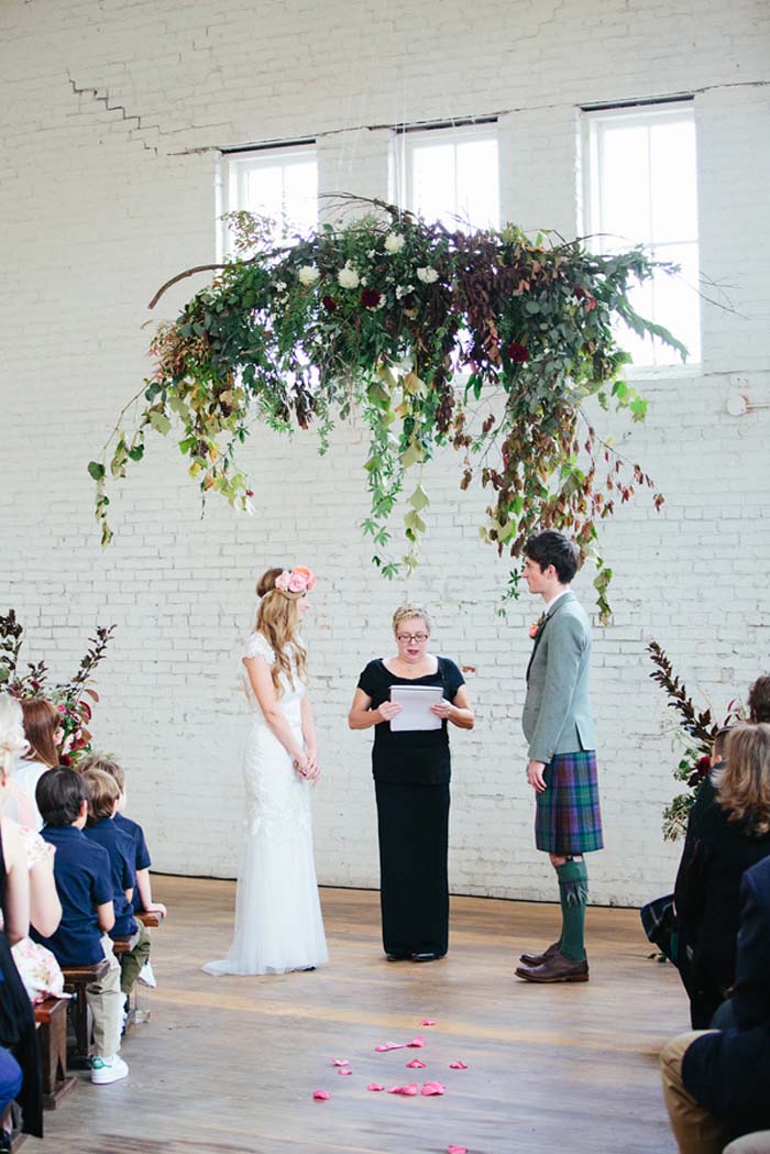 While most people would expect to see a flower chandelier at the reception, they can add an extra wow factor to your ceremony too. Creating this centrepiece will draw all the attention to where you and your partner say I do. We can’t think of anything more special than that!