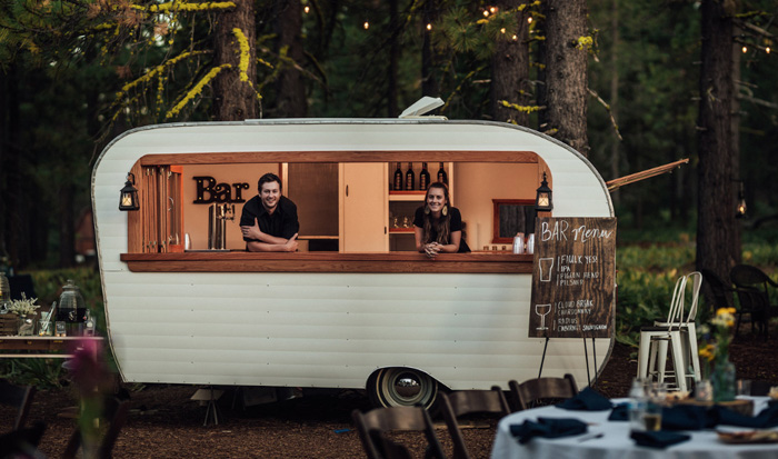 We love the idea of incorporating elements of your relationship into your big day to really enhance the personal touches. We can’t think of a better way than a campervan bar for the adventure sweethearts. Why not make it even more special by adding photos of your adventures to the bar!