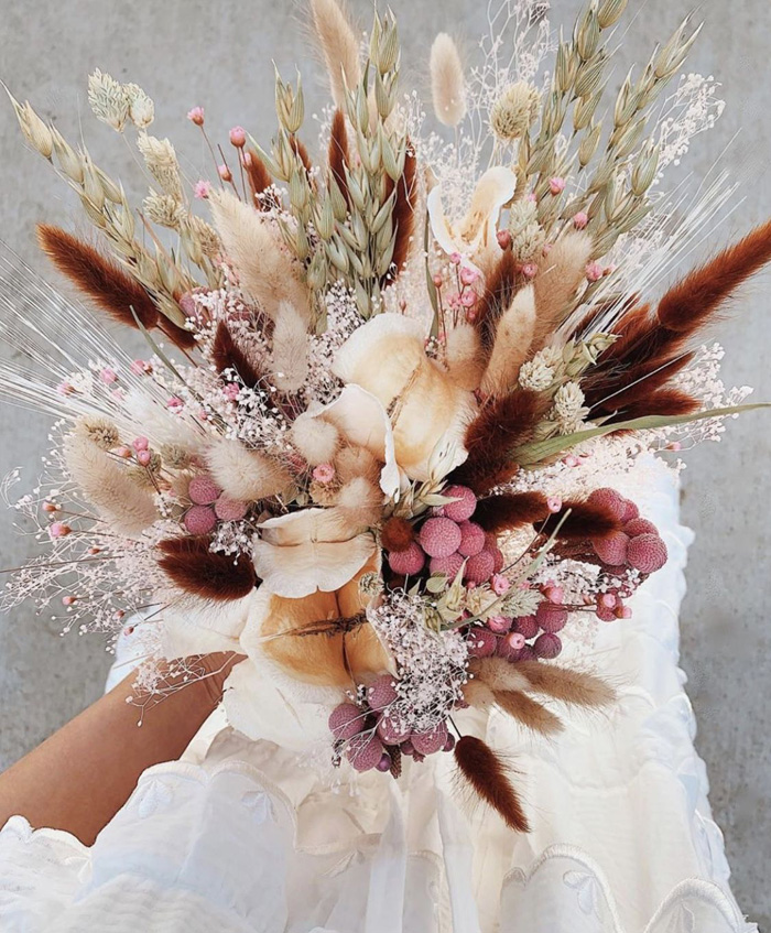 Eco-friendly bouquets are here to stay. Using preserved and dried blooms like wheat, pampas, and bunny tails not only looks stunning but also lasts for years. A modern keepsake that’s as sustainable as it is sentimental.