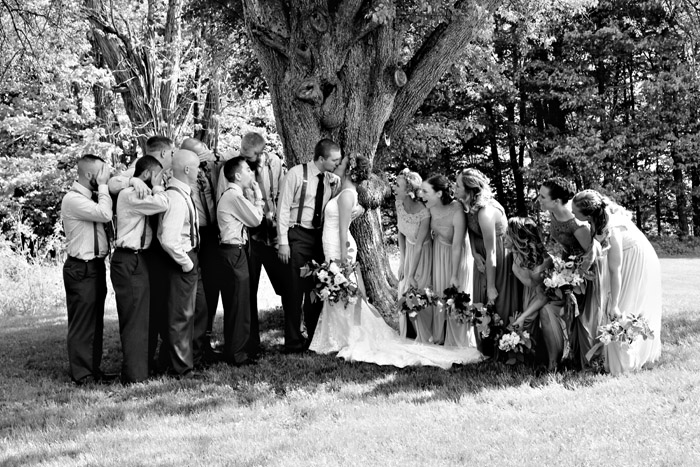 A kiss is a romantic and private moment between the couple. When this private moment is shared in public, there can be some pretty hilarious reactions! Make a joke and get your bridal party to react in a humorous way.