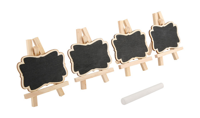These small chalkboard signs are a great way to number tables or mark where each person is to sit at the reception. These could also be used to specify ingredients in particular foods for the budget style meal.