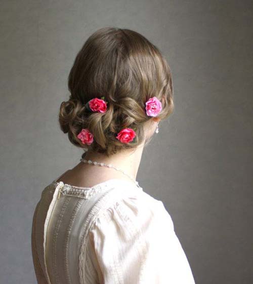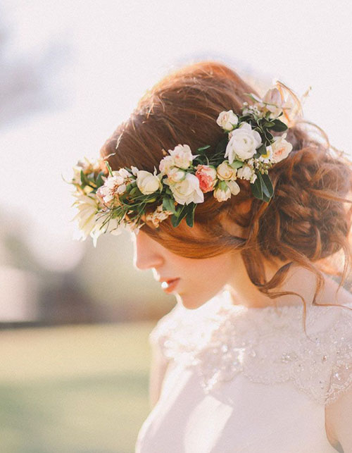 Fresh florals or even silk flowers are a natural complement to any bridal look. If you decide to wear flowers in your hair on your wedding day then you’ll need a wedding hair style that balances the flowers or provides a suitable place for them to sit.