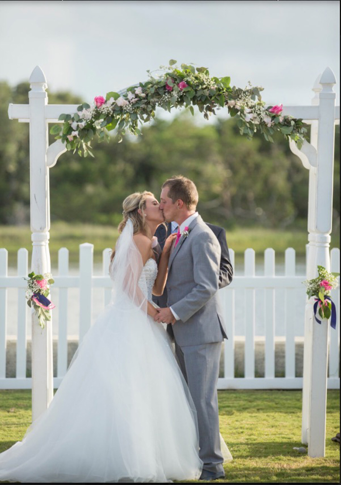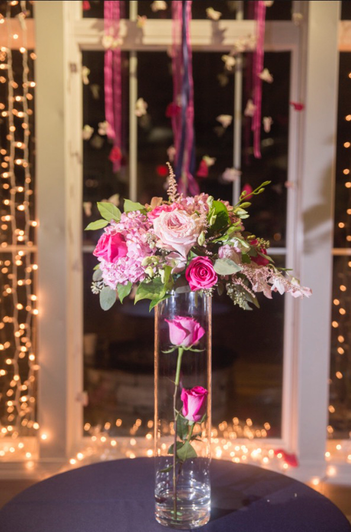 I literally wasn’t as worried about the type of flowers so much as the colour. I looked online at hot pink bouquets and sent some photos to my florist and let her decide on what best fit my vision. I was focused on the flowers being hot pink to really pop against the girls navy blue bridesmaid dresses! My florist’s name is Carolyn and owns Avalon Event Floral in Morehead City NC. Carolyn was always so supportive and full of great ideas.