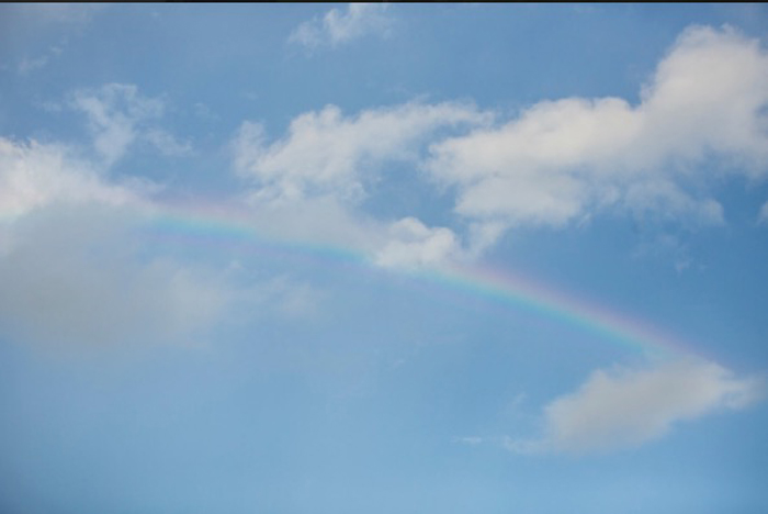 The raindrops stopped abruptly moments after they began and the wedding guests watched in wonder as the grey clouds rushed off hurriedly as if being shooed away by an unseen force. The sun struck a proud pose high up in the early evening sky as it painted the backdrop of the sky in a warm Carolina Blue and placed the first wedding gift for us in the foreground, majestic and unwrapped for all to see: a stunning, multi-colored double rainbow.