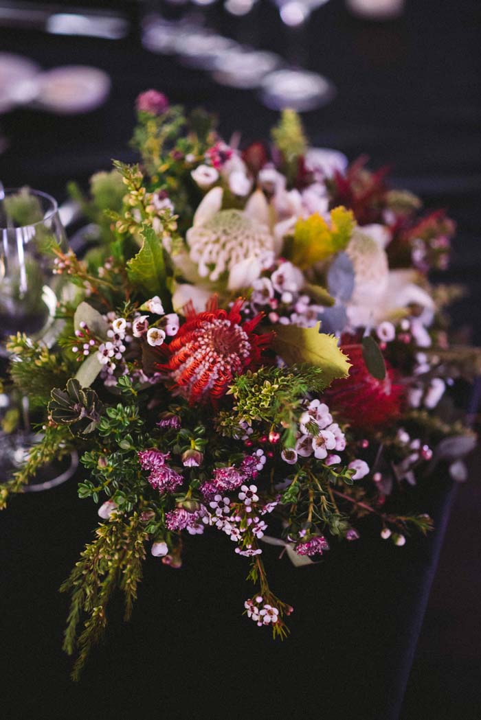 We ordered in a chandelier, a black and white tiled dance floor and some white lounges to fill out our dance area. We went for black table cloths and the florist supplied native flowers as out centrepieces. Out on the deck overlooking the river is stunning at night, the city lights were a real feature at our wedding.