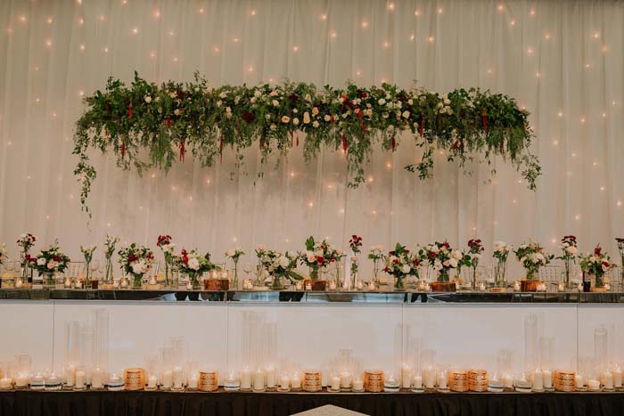 “I love flowers,” exclaims Natasha. “I imagined flowers hanging above the dance floor, suspended over the bridal table and overflowing from tables. Even though we had a large reception, I wanted it to feel warm and intimate. Decorations by Jelena nailed it. They did more than I could have imagined!”