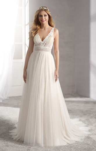The Fara Sposa and Novia D’Art bridal collections are designed by dynamic sisters Marta and Terry Raich in their atelier in Barcelona, Spain. This family run business has been a favourite with European brides for over 40 years and Peter Trends Bridal is proud to bring the collection to Australian brides. Feminine and sensual wedding dresses with delicate laces, intricate applique and luxurious fabrics bring European quality and design to the world.